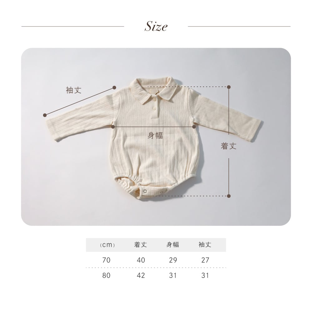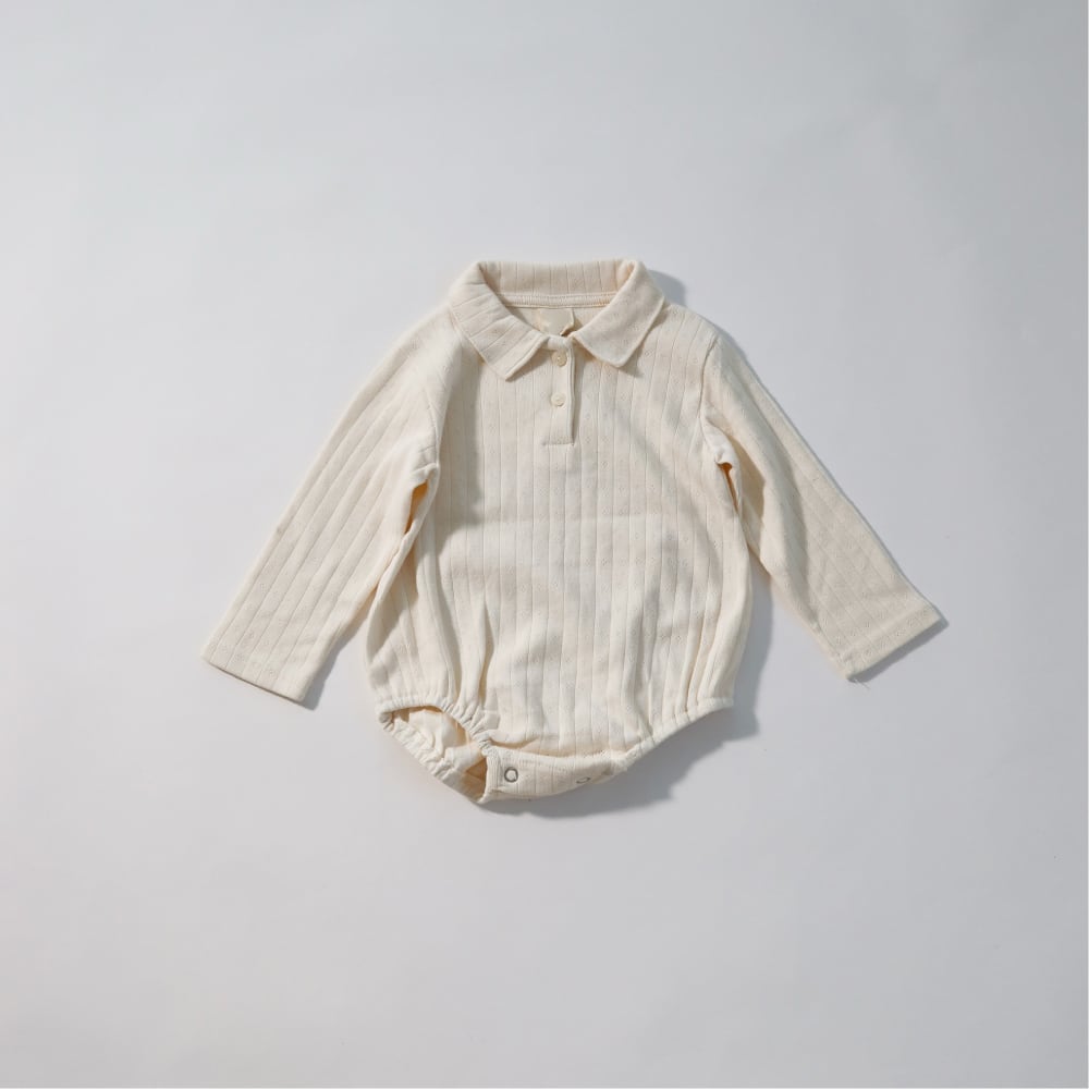 襟付きのシンプルなロンパース。