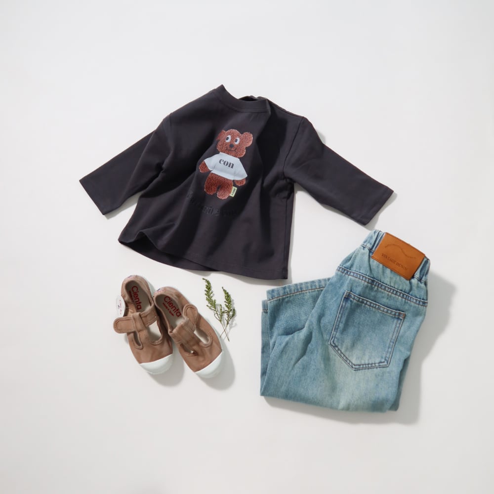 くまプリントが主役のデイリートップス