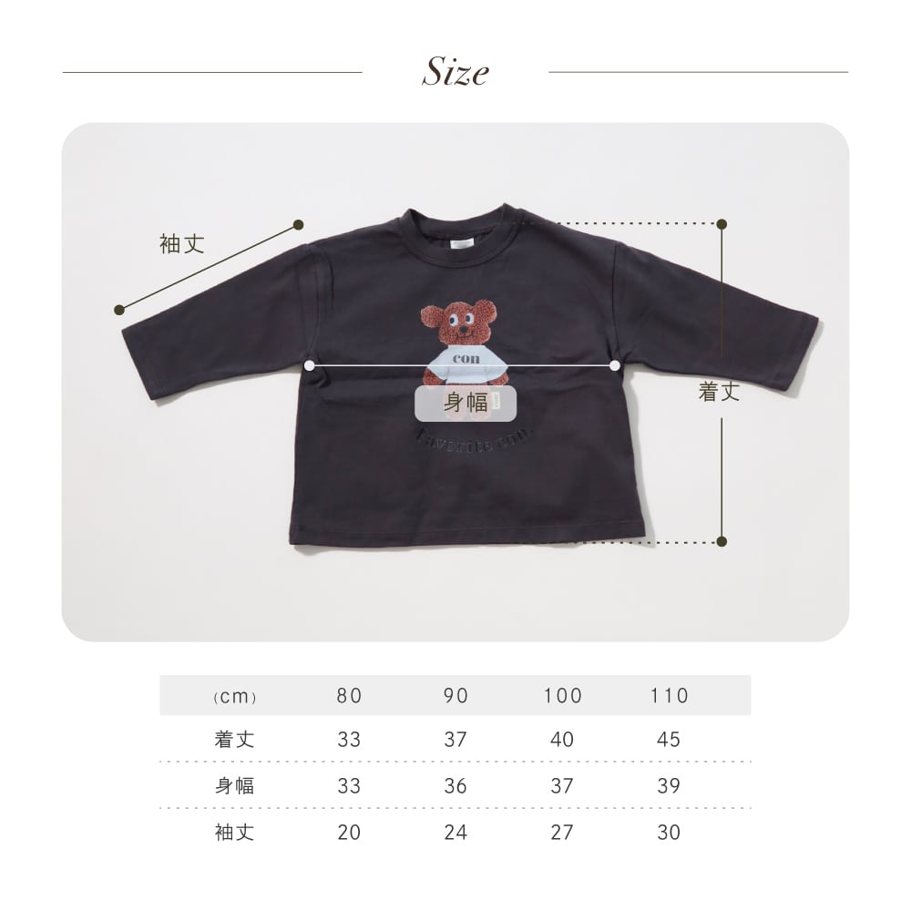 ころんと可愛いベアデザインが目を惹く一枚。